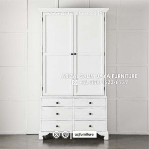 Lemari Pakaian 2 Pintu Putih Model Minimalis Dengan 6 Laci