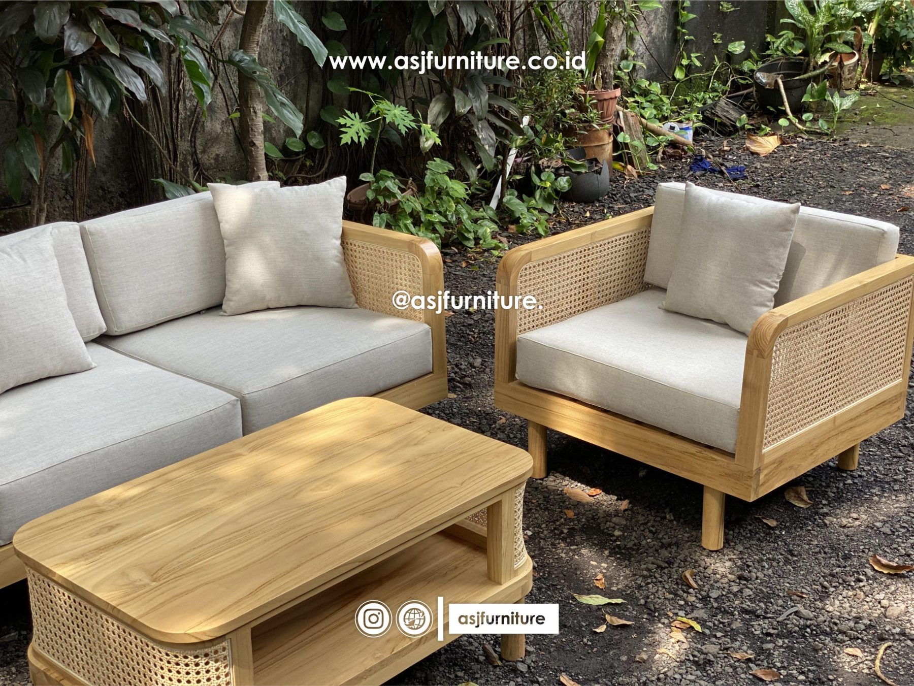 - Bahan : Kayu Jati Solid, Rotan